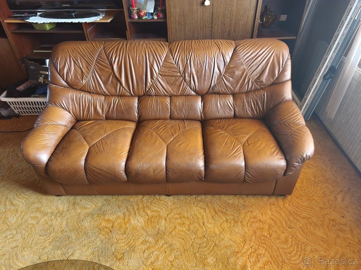 Nabízím koženou sedačku-gauč dlouhý + krátký + křeslo-komplet za 10000,-Ká + kožešiny'1200,-Kč nebo komplet-sedačka+kožešiny+stolek za 15000,-Kč sedačka pevná,neprosezelá !!