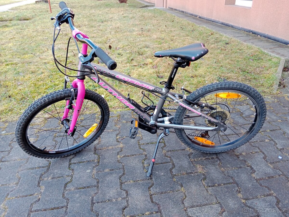 Prodám dětské kolo Author Cosmic 20. Přehazovačka Shimano 6st stojánek, držák na pití. Není to nové kolo, nějaké oděrky se najdou. PARAMETRY: Rám: Lehký duralový (hliníkový) rám o velikosti 10" s pohodlnou geometrií. Vidlice: Ocelová vidlice. Převody: Kolo je vybaveno přehazovačkou s 6 rychlostmi. Kola: Průměr kol je 20 palců. Hmotnost: Díky duralovému rámu se jedná o jeden z nejlehčích modelů ve své kategorii. Vhodné pro děti 6-9 let (105-135cm) Stav viz foto. Možno po domluvě dovézt Štětí a okolí. Více info SZ.