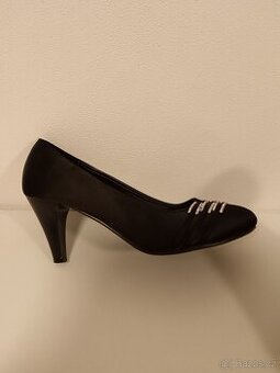 Nabízím krásné černé lodičky s kamínky vel. 39, délka vnitřní stélky 25,5 cm, velikost podpatku ze zadní strany 7,5 cm
