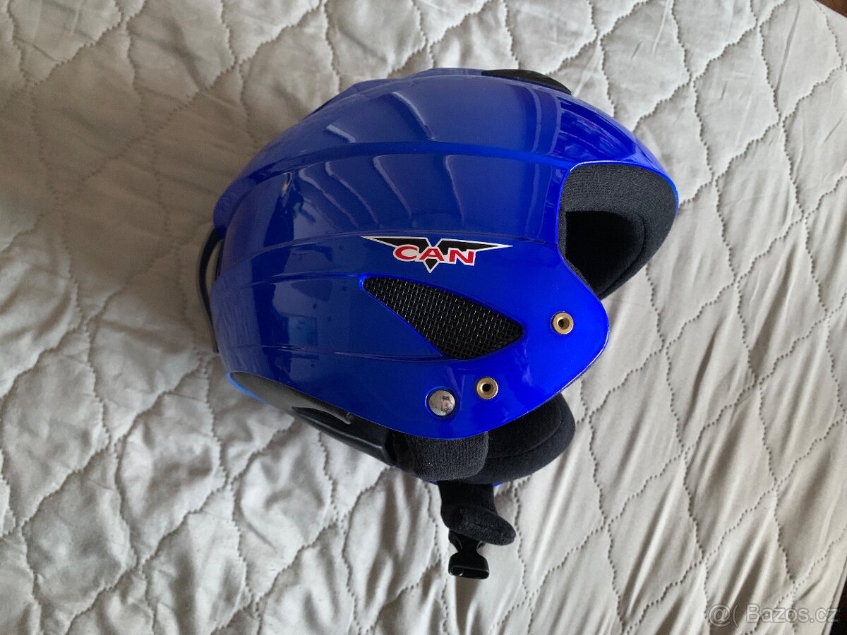 Kvalitní lyžařská přilba značky CAN, velikost S 55/56 cm. Uzavíratelné větrací otvory. Barva perleťově modrá.