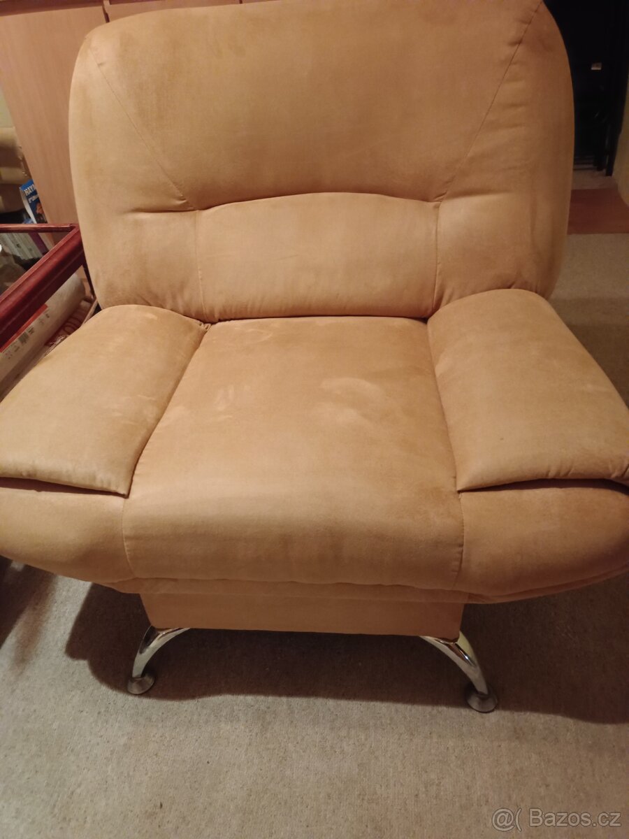 Prodám sedací soupravu, rozkládací gauč a 2 křesla. Málo používané, nezničené, velmi dobře zachovalé. Nutný vlastní odvoz.