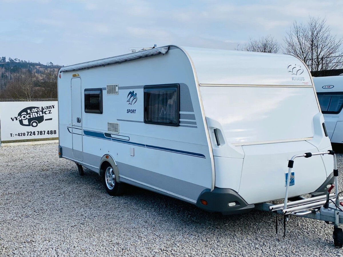 Knaus Sport 500 - rok 2007 - hmotnost 1200/1400kg - délka 728cm - šířka 230cm - pro 5-6osob - francouzká postel (196x140cm), rozkládací sezení (196x96cm) a palandy (186x77cm) - sáčková markýza - lednice 12/230/plyn - el. rozvod 12/230V - tří plotýnkový vařič - mikrovlnná trouba - držák na TV - rychlost 100 Km/h - plynové topení Truma s rozfukem - el. bojler Truma - chemické WC - sprchová vanička -(jednoduchá montáž sprchy) - dvojitá okna s termoroletami a sítěmi proti hmyzu i ve vchodových dveřích - stabilizátor - držák vepředu na 2 jízdní kola - držák vzadu na 3 jízdní kola - rezerva - alu kola - střešní okna -dovoz NL -v ceně je zahrnuta dovozová STK - možnost montáže příslušenství (solárů, moverů, plyn. bojlerů a mnoho dalšího) - při prodeji odzkoušení a příprava v našem servisu v ceně - karavan je k vidění v Bransouzích u Třebíče, prohlídka možná kdykoliv. Před návštěvou si prosím zavolejte na tel. 724 787 488 nebo 724 396 361. Všechny nabízené karavany máme skladem