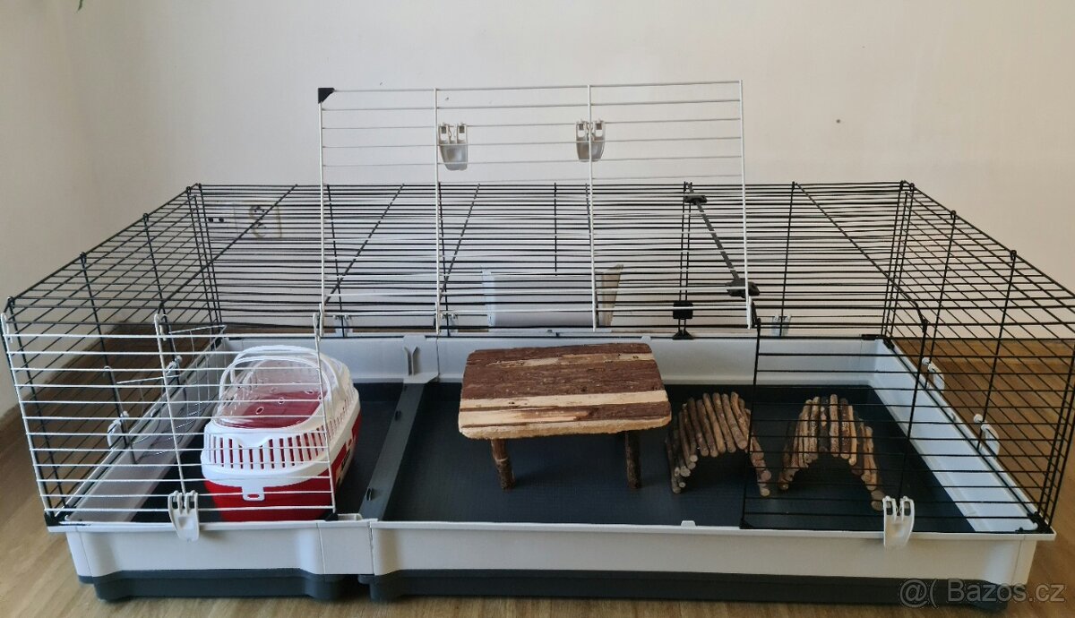Prodám klec Ferplast, délka 140 cm, šířka 59 cm, bez vad, k tomu přepravka, dřevěný domeček a dva tunýlky, keramické misky. Cena 1.200 Kč. Osobní převzetí Nehvizdy (Praha-východ)