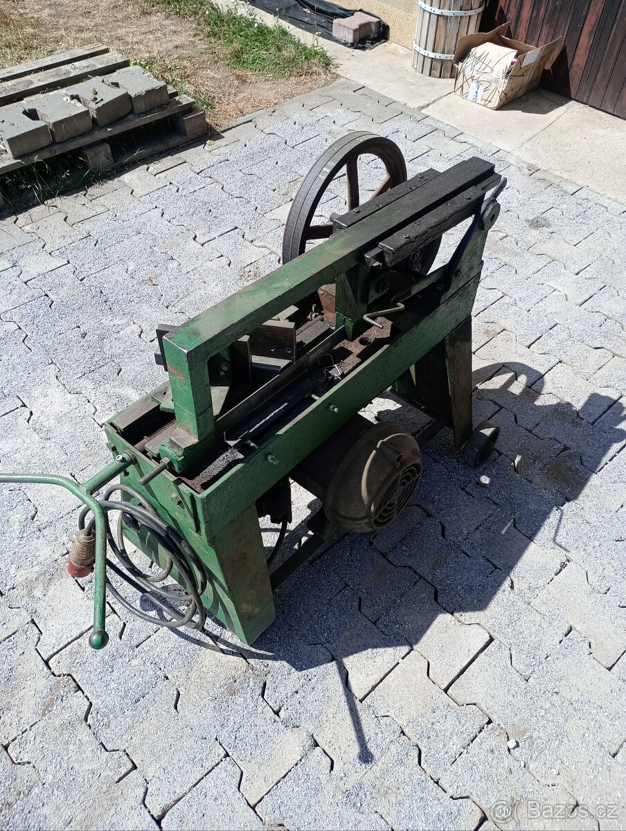 Prodám strojní pilu, má vůle ale je funkční. Maximální průměr děleného materiálu 200mm, plynule nastavitelný svěrák, nové řemeny a pojezdová kolečka. Vhodné na plné materiály a silnostěnné profily (tenkostěnné trhá). Vidlice čtyřkolík 16A