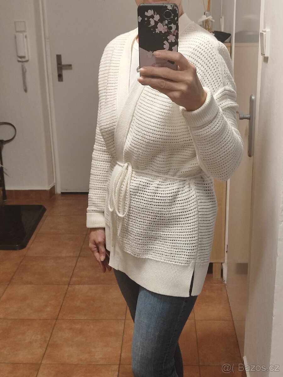 krásný krémový kardigan, kupovaný na about you, bohužel velký, pouze odstřižena cedulka,takže nový, délka 77cm, rukáv od krku 76cm, značka Gap, velikost L, P.C.1290kč
