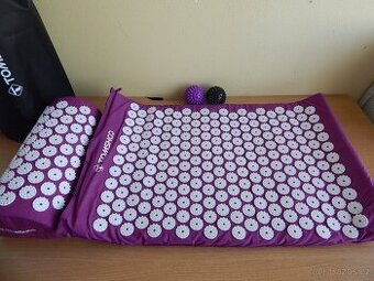 Akupresurní podložka s polštářkem - nová. Barva fialová Chodník pro bosé nohy nebo-li masážní chodníček. Masážní podložka s odepínatelnými kamínky, stimuluje a prokrvuje akupresurní body na chodidlech, zmírňuje svalové napětí. Akupresurní podložka Tomshco je skvělá pomůcka pro přirozenou masáž a stimulaci chodidel. Podložka se skládá ze dvou částí - plochy, po které se můžete volně procházet a 2 obrysů nohou, kde jsou kamínky umístěny tak, aby co nejlépe stimulovaly akupresurní body na vnitřních stranách chodidel. Body, které jsou jednotlivými kamínky stimulovány, jsou popsány na nákresu. Nespornou výhodou je možnost odepnutí jednotlivých kamínků a tím vytvoření vlastní cesty, která Vám bude vyhovovat. Pokud by pro Vás byla chůze po kamíncích příliš náročná, dá se chodníček použít i v sedě. Jednoduše se posadíte, položíte nohy na podložku a přitlačíte. Masáž bude jemnější, ale pořád účinná. Masírování a stimulace akupresurních bodů nohou má vliv na cirkulaci krve a správný chod metabo