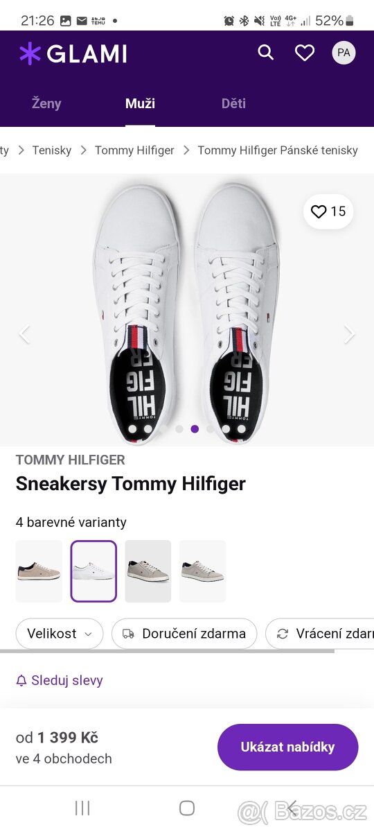 Nabízím tenisky Tommy Hilfiger špatná koupě. Synovi jsou malé. Jednou vyzkoušeno.Velikost 41. Kupováno na GLAMI. PC:1390kč. Prodám za 500kč +79kč zasilkovna. Pište prosím na tel.číslo. Děkuji
