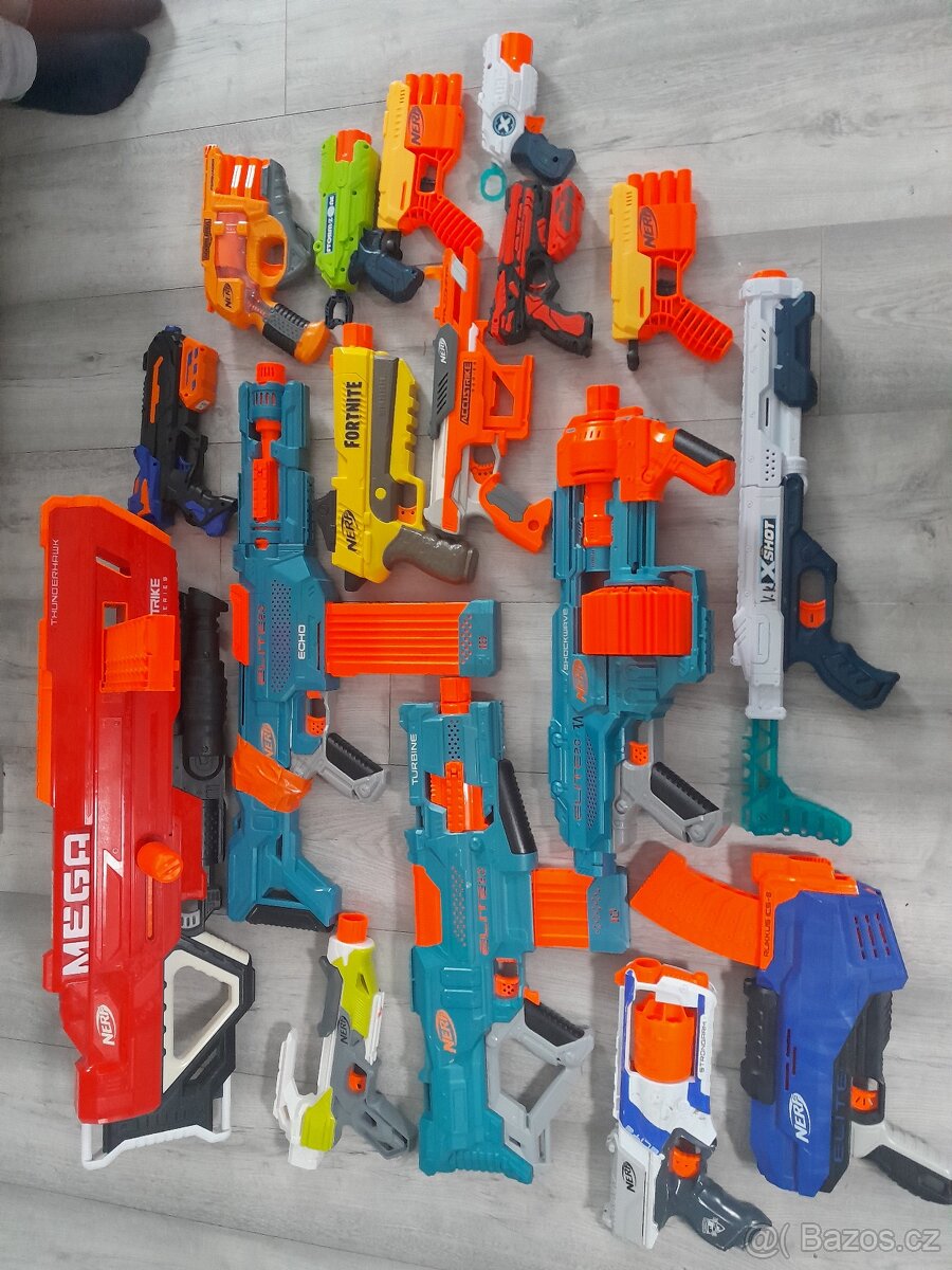 Dobrý den Prodám pistole Nerf 16 kusů. Všechny funkční, 1x elektro. Včetně nábojů k největší nejsou.
