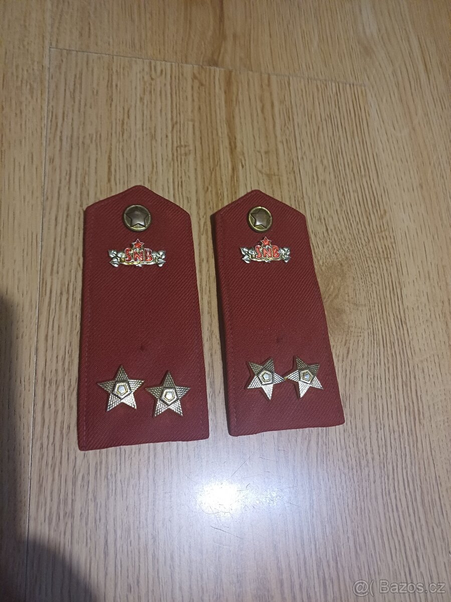 Prodám 2 ks. náramenníků příslušníků VB, SNB v hodnosti poručík, vel. 13 - viz foto. Cena + poštovné (Zásilkovna), nebo osobní předání v Praze, nebo na Berounsku. Podívej i na další moje inzeráty.
