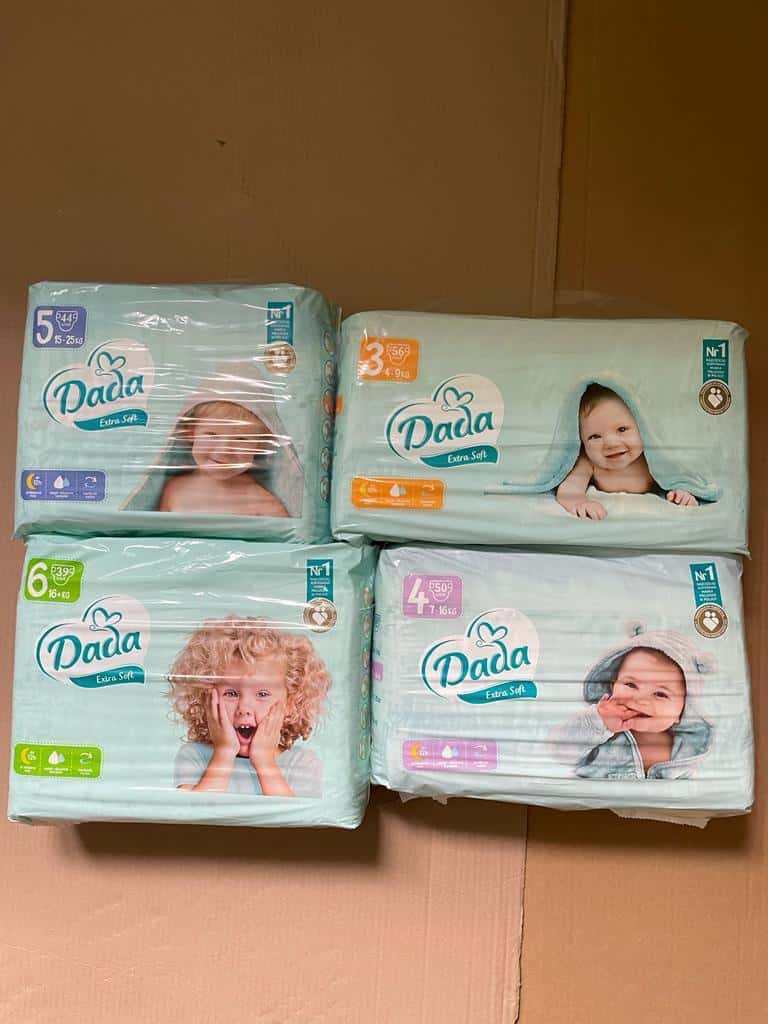 Cena: Dohodou. Prodám pleny dada extra care, extra soft, jumbo bag extra care, jumbo bag extra soft, pants extra care, jumbo bag pants extra care, ubrousky every day 7 x 72ks. Minimalni objednavka 2 palety. Doprava v cene zbozi. mobil:+48 602 295 565