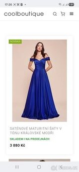 Prodám saténové plesové šaty, velikost S (6), s rozparkem, vzadu zip, samodržící. Barva královská modrá. V prodeji v Coolboutique v Praze. Účtenku k tomu (stále plně v záruce).