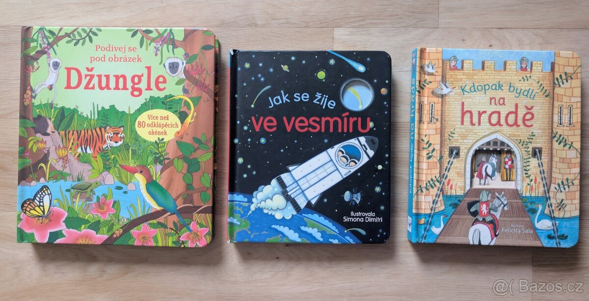 Dětské obrázkové knížky, spoustu otevíracích okének. Velmi pěkný stav, cena za vše. 100 Kč