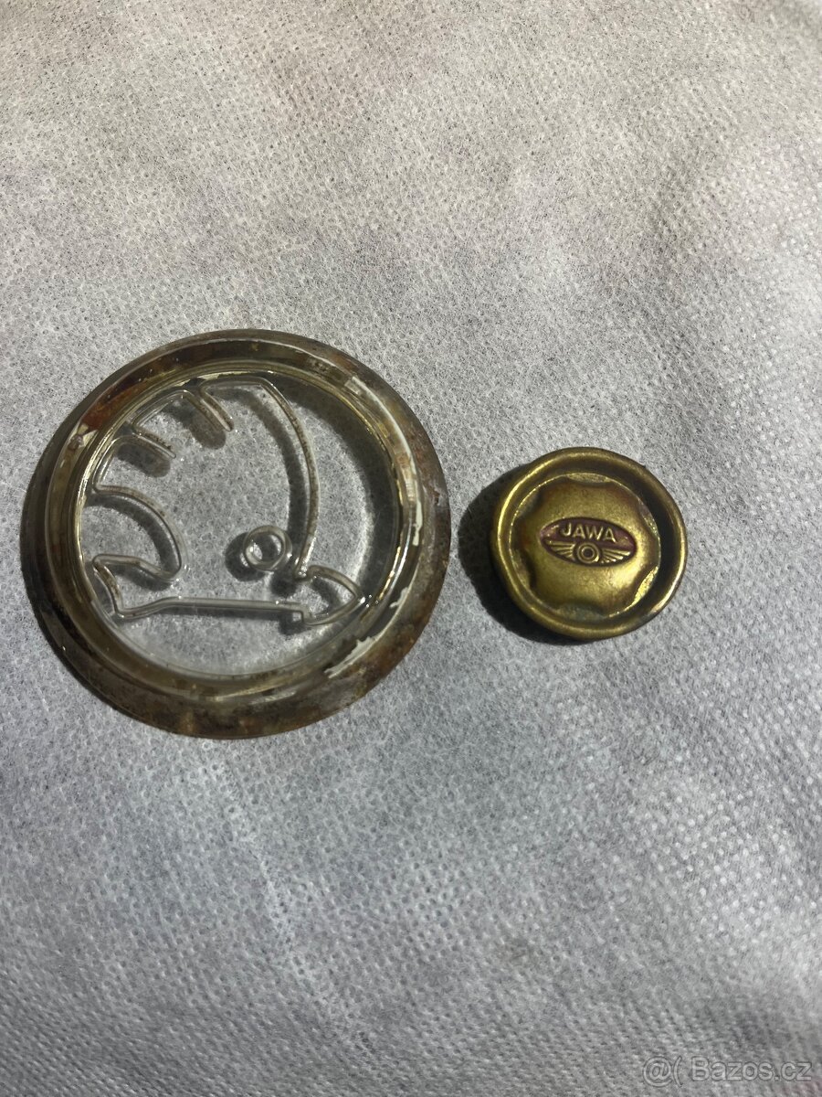 Prodám znak JAWA a skleněný znak ŠKODA stav a rozměry viz fota