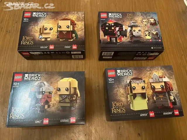 Prodám 4 nové sety Lego Brickheadz Pán prstenů 40632 - Aragorn and Arwen 40751 - Legolas & Gimli 40630 - Frodo & Gollum 40631 - Gandalf the Grey and Balrog Pouze dohromady. Ideálně osobně v Brně, ale není problém poslat.