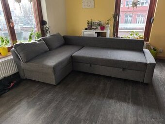 Prodám rozkládací gauč/pohovku/sedačku Ikea Friheten. Používané 2 roky, čisté. Jeví běžné známky použití, ještě poslouží. Prodáváme ji, jelikož po přestavbě potřebujeme v bytě opačnou orientaci lenošky. Rozměry: 230x150cm (samotná sedací část bez lenošky má 90cm). Sedačka je rozložená, nutný vlastní odvoz Praha Vysočany.