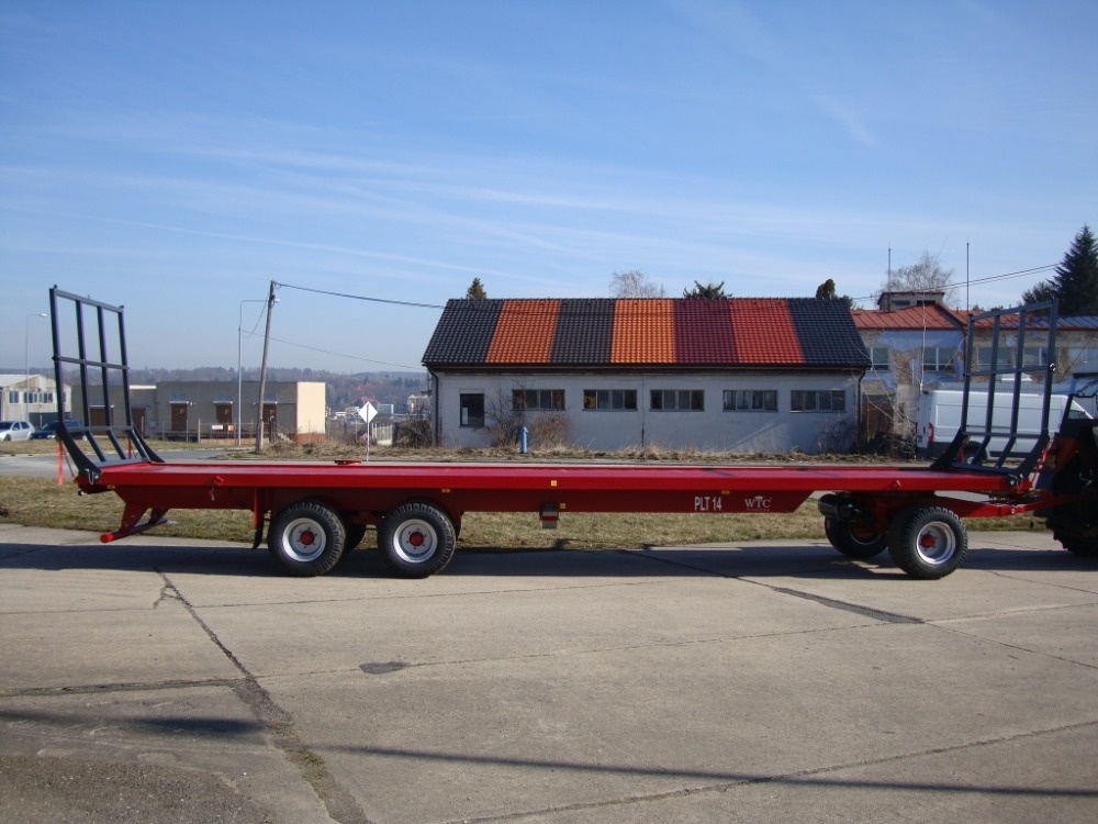 Traktorový přepravník balíků PLT 14 na "přívěsové" platformě podvozku. Tříosý přepravník s celkovou povolenou hmotností 18 000 kg a délkou ložné plochy 10 m a šířkou 2,4m. PLT 14 disponuje nosníkem podvozku z uzavřených silnostěnných profilů, obvodem ložné plochy z uzavřeného jaklu bez ostrých hran, odpruženými nápravami ADR (40 km/hod), automatickou parkovací brzdou, sklopnými zábranami vysokými 2 m, točnou s naddimenzovanou povolenou zátěží, automatickým zátěžovým regulátorem tlaku brzd a mnohým dalším.