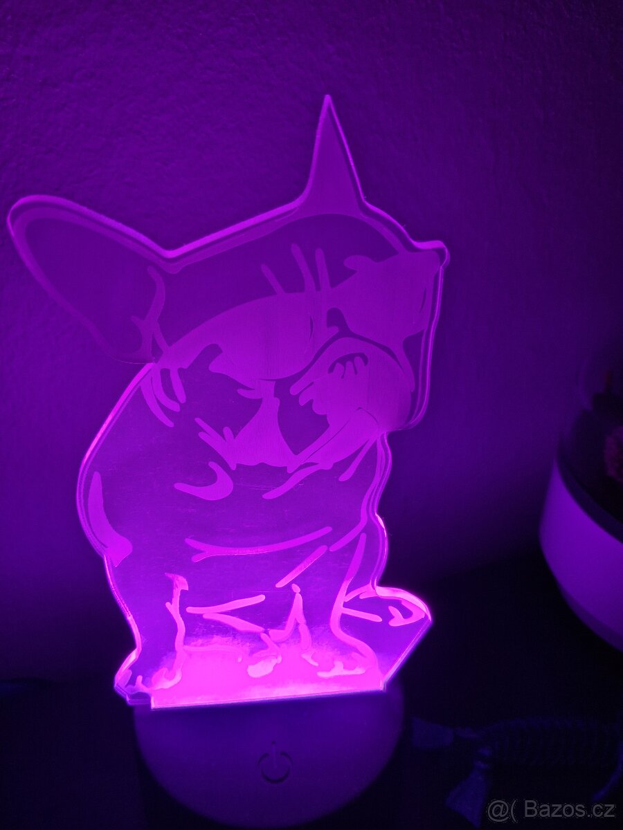 Prodám lampičku buldočka, lampička mění barvy podle zadaní, k dispozici dálkové ovládání. Lampička je nová. Cena 100kč