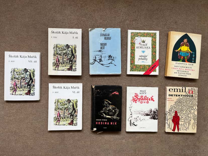 F. Háj - Školák Kája Mařík 1., 6. a 7. díl - PRODÁNO Stanislav Rudolf - Modrý déšť Eduard Štorch - Hrdina Nik Malý alšův špalíček Hadí korunka (národní pohádky) Svatopluk Čech - Výlet pana broučka Erich Kästner - Emil a detektivové Všechny knížky za 50,- Kč