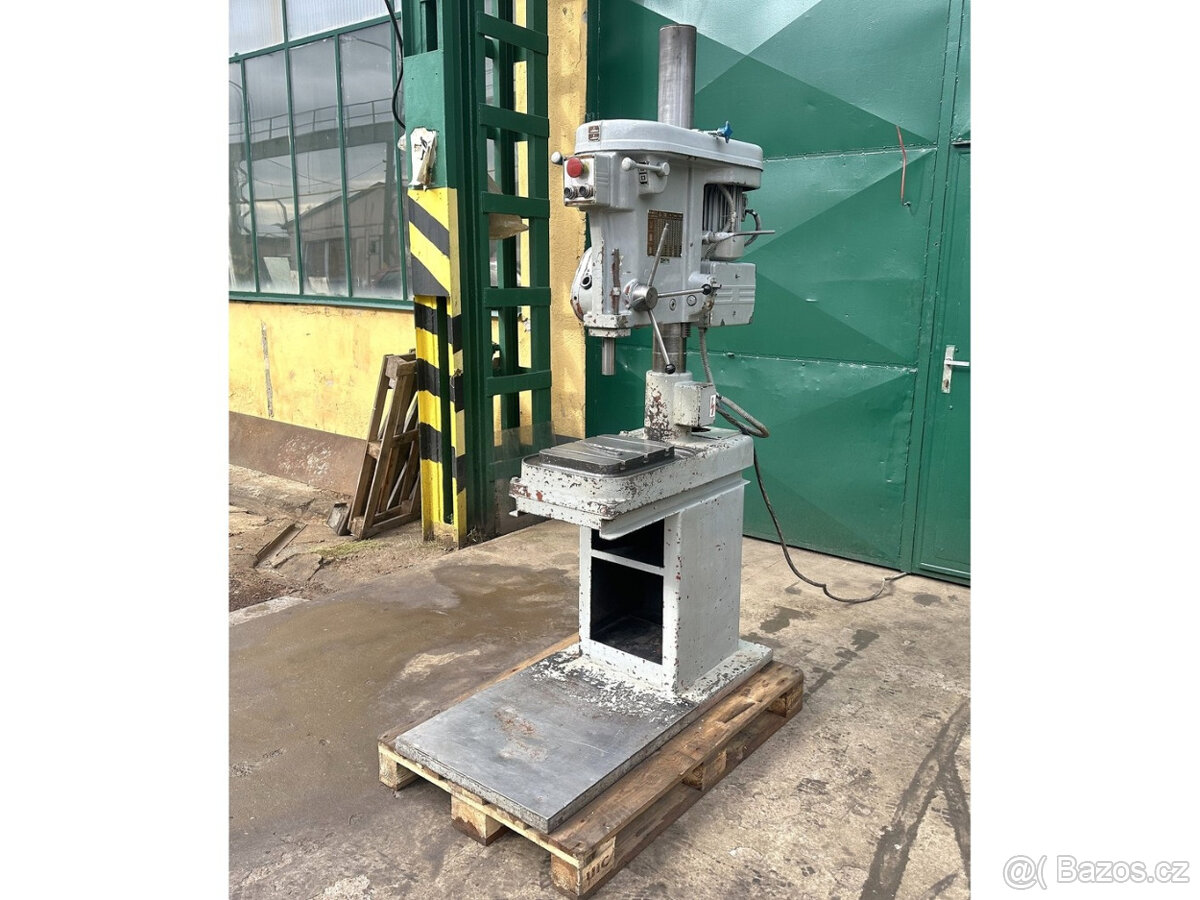 Nabízíme k prodeji stolní vrtačku V 20 A , vč podpěrného kovového stolu. Výrobce: TOS Svitavy, Rok výroby:1969, Zákl. tech. parametry: Upínací kužel vřetena Morse 3, Max. průměr vrtání 20 mm, Vrtací hloubka 160 mm Upínací plocha stolu 280 x 355 mm, svislý pohyb vřeteníku 370 mm, Vzdálenost konce vřetena od upínací plochy základové desky: min 130 mm – max 500 mm , Vzdálenost vřetena od sloupu 250 mm, Počet stupňů otáček 9, Rozsah otáček vřetene 71-2800 ot/mm, Výkon hlavního elektromotoru 1,6 kW Rozměry (d x š x v) 510 x 970 x 1350 mm, Hmotnost stroje 400 kg, stroj je možné vidět i odzkoušet v našem skladě v Přerově.