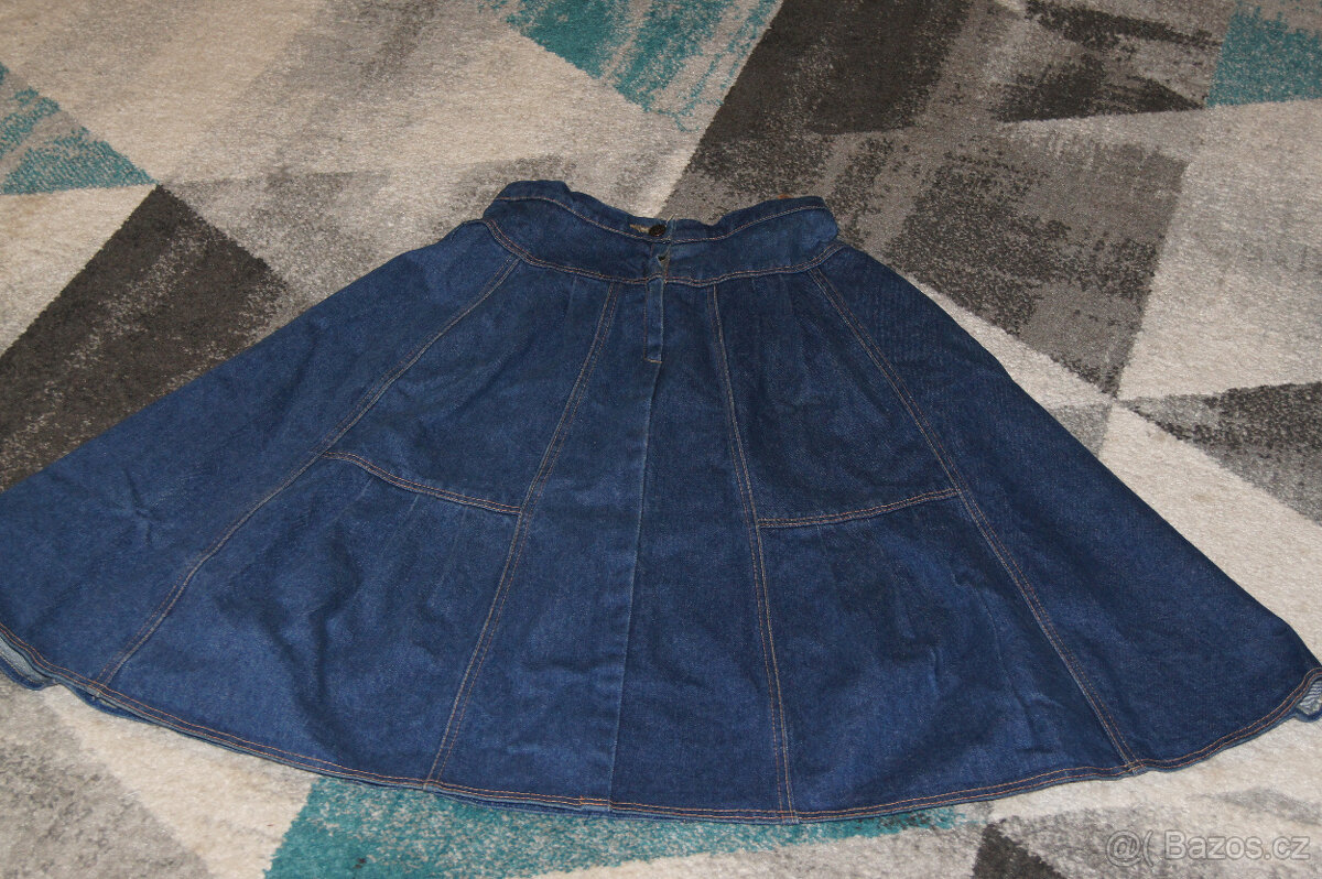 Prodám téměř nepouživanou riflovou širší sukni. V pase 64 cm, délka 73 cm.