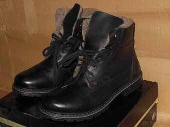 Prodám kožené (pravá kůže) kotníkové, pánské boty, černá barva, zateplené, nové, nenošené, zabalené,vel.42