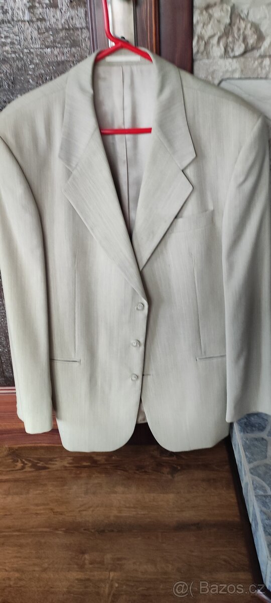 Prodam panske sako pouzite asi trikrat ted uz je my male proto prodavam delka kalhot asi 108cm obvod v pase asi 90cm a delka saka asi 90cm. Vice info na tel.