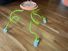 Velmi hezký a nepoškozený lustr do dětského pokoje. Základová deska a ramena z kovu. Stínítka jsou bílá, na fotce vypadají jako modrá.