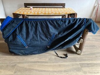Prodám stájovou deku 135 cm a 200 g. Používaná, na plecích zevnitř opotřebená - viz foto. Všechny poutka a přesky drží. Zasílám přes zásilkovnu.