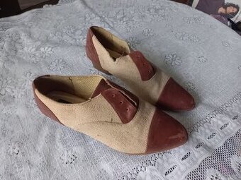 Prodám retro dámské polobotky, nikdy nenošené, materiál látka a kůže. Nálezový stav. Velikost 41. Vhodné jako dekorace, rekvizita, obuv pro divadelní herečky. Osobní předání ve Veselí nad Moravou nebo lze i poslat přes Balíkovnu.