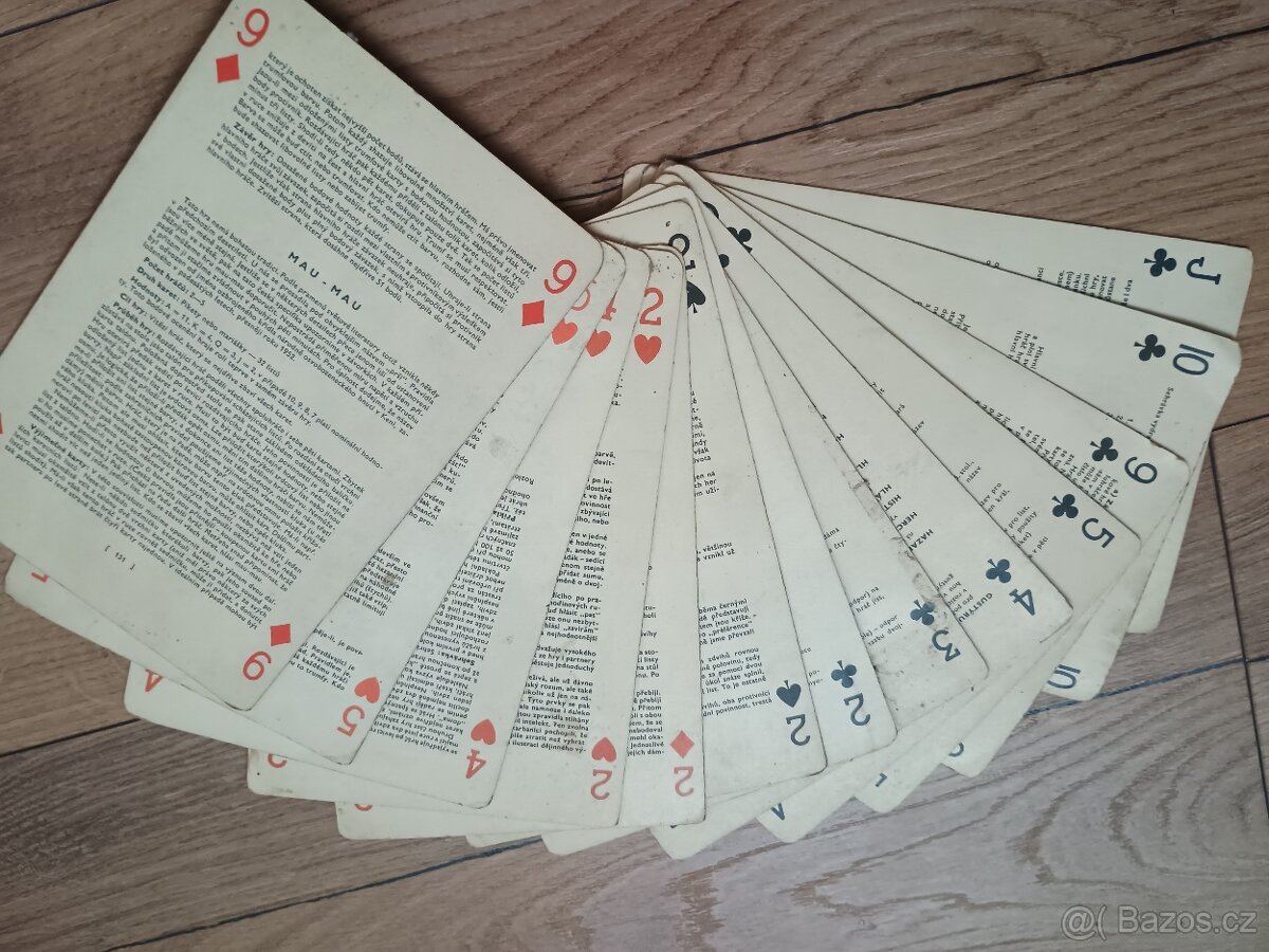 Velké hrací karty, které mají na své rubové straně návody pro hraní různých karetních her.