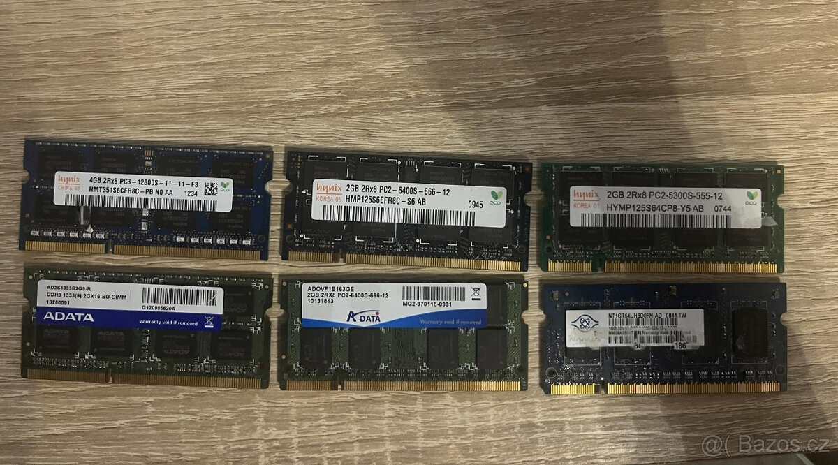 DDR3 a DDR2 paměti pro notebook