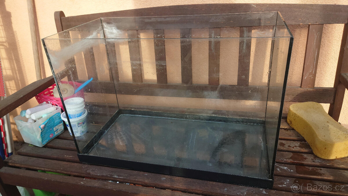 Prodám akvárium i s příslušenstvím viz. foto. 2 filtry - oba jsou funkční, ale jeden má opotřebovanou vrtulku, která je víc slyšet. Víko se světlem, výzdoba, provzdušňovač, podběráček, čistítko skla, náhradní hadičky, automatické krmítko, zbytek krmení pro malé rybky. Pouze osobní odběr.