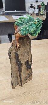 Velmi realistická socha ještera z tvrdého dřeva. Osobní předání Praha nebo dobírka.