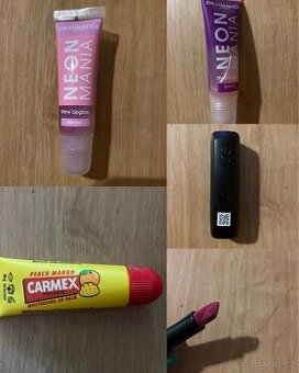 Balzám a lesky na rty, rtěnka Rtěnka vyzkoušená na ruce, zbytek nové, nepoužité Cena uvedená za vše Jednotlivě kus 50,-