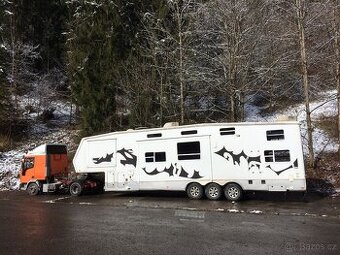 Prodam americky obytny naves JAYCO RECON ZX r.v. 2007 s tahacem Iveco 180 E21 T. Naves ma 3 vysuvne elementy a 8 mist pro spani, obyvaci pokoj s kuchyni, loznici se sprchou a umyvadlem, garaz pro male auto nebo 2 ctyrkolky apod.. Vybaveni: fotovoltaik, elektrocentrala, pumpa s nadrzi na tankovani, Obyvaci pokoj s kuchyni: lednice, trouba,mycka, klimatizace, televize s automatickym SAT, HiFi... Zvenku:tazne zarizeni, veliky odkladaci prostor, markyza... Tahac je r.v. 1997, 2 mista na spani... Cena podle dohody, dalsi fotky na pozadani...