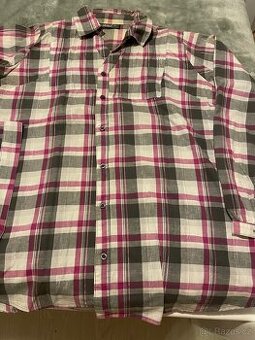 Prodám dámskou plátěnou košili slušivého vzhledu, projímaný střih lichotící postavě, velikost lze ještě korigovat páskem, který můžete zavázat dozadu nebo dopředu Velikost 42, rozměry prsa 50cm, délka 72 cm Nošena pouze párkrát Informace na email lenka611 @seznam.cz