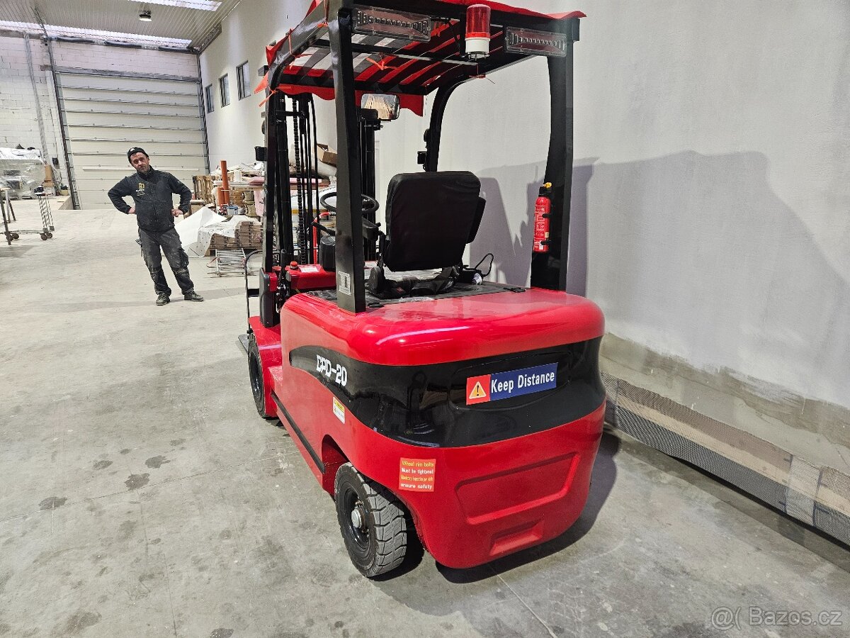 Prodám úplně nový elektrický vysokozdvižný vozík s nosností 2 tuny k vozíku nabíječka na vozíku je nainstalovaný boční posuv a sjíždění a rozjíždění vidlic při rychlém jednání výrazná
