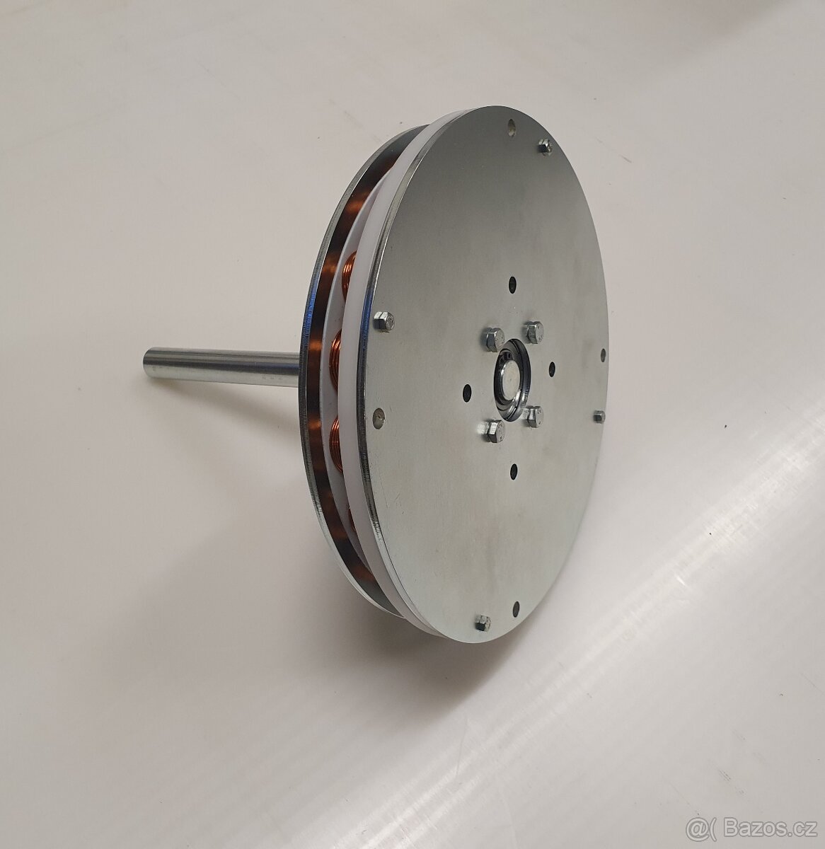 Prodám deskový pomaloběžný alternátor (generátor) 12V / 10A, vhodný pro větrnou elektrárnu s vrtulí o průměru 1,4 – 1,6 metru, bez nutnosti použití převodu. Výkonová křivka v přiložených grafech. Kvalitní ložiska, celá konstrukce galvanicky zinkována. Třífázový usměrňovač integrován na desce statoru. 12V olověný akumulátor začíná nabíjet již od 170 ot./min. viz. graf. Jedná se nový kvalitní generátor české výroby se zárukou a dostupností nových náhradních dílů. Možnost fakturace na IČ za 7996,- Kč bez DPH, uvedená cena 9676,- Kč je s DPH.