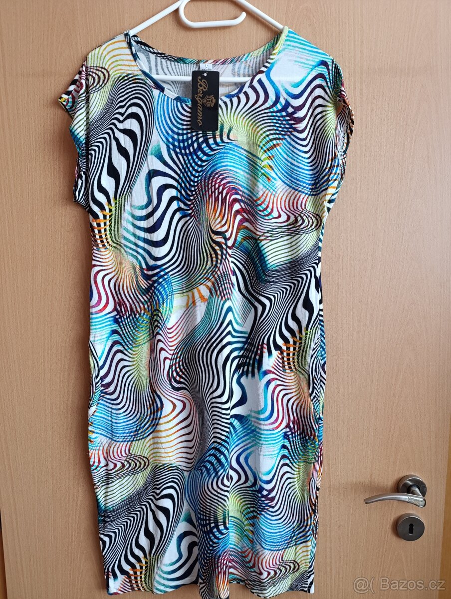 Nové šaty Bergamo s visačkou, vel.L, šířka přes prsa 46 cm, délka 96 cm.