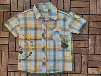Prodám velice málo nošenou, moc pěknou, příjemnou, lehkou košili zn. dopodopo (Takko). Uvedena velikost 122. 100% bavlna. Košile je ozdobena nášivkami a tištěným obrázkem. Bez žmolíků, flíčků a jiných vad. Rozměry: od krku dolů 51cm (zadní díl 53cm), šířka 40,5cm, rukáv od krku 26.5cm. Poštovné dle tarifu, Zásilkovny, Balíkovny či ČP. Osobní předání možné v Brně.