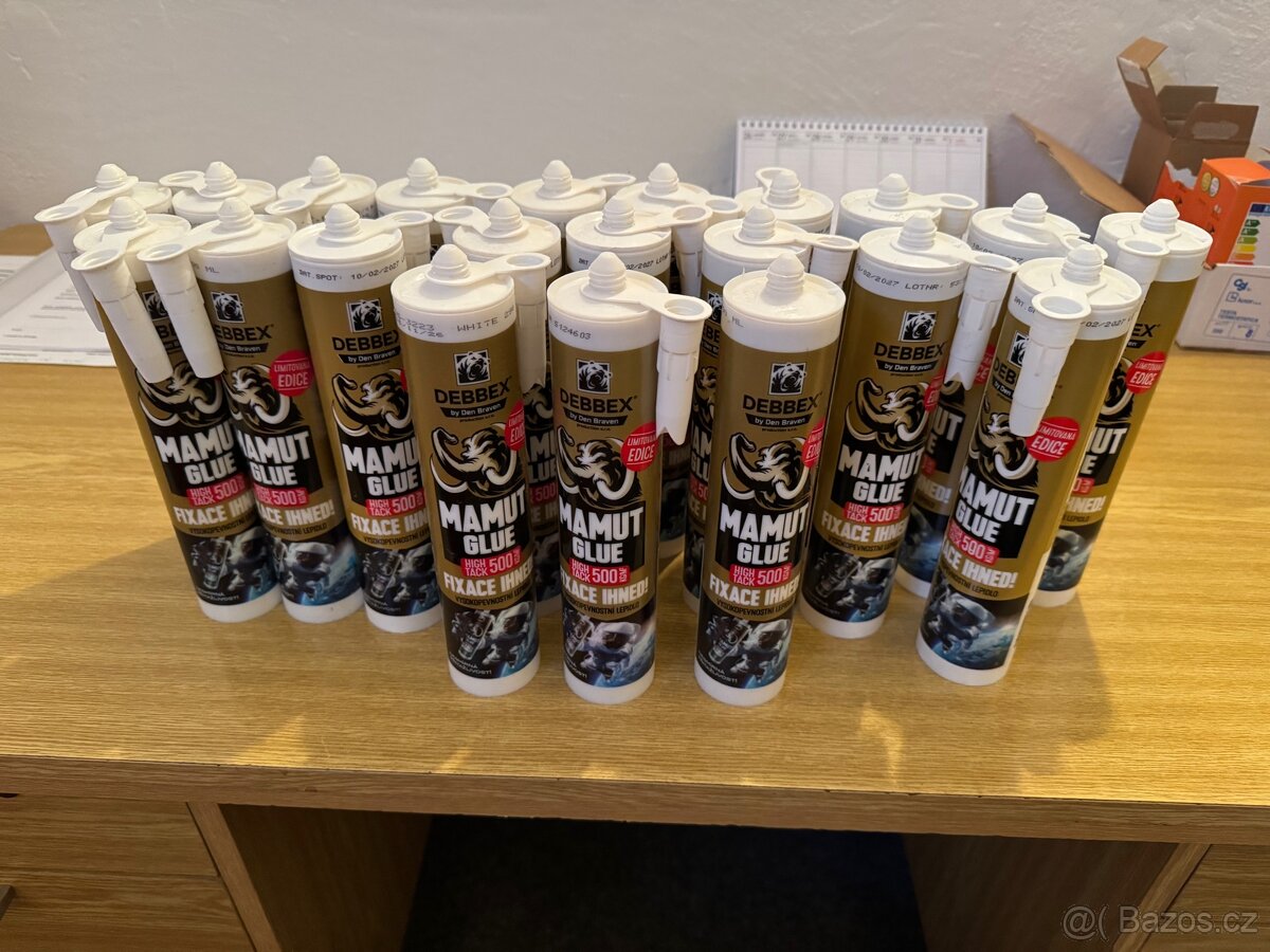 Prodám Lepidlo Mamut glue datum spotřeby- expirace rok 2027 Cena 120,- Kč /1kus . K dispozici mám cca 20 kusů na prodej ,libovolný počet Vám mohu poslat ppl cena přepravy 78,- Kč .