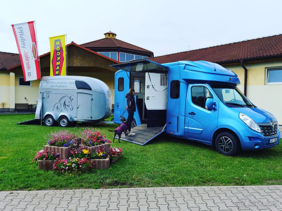 Prodám kvalitní přepravník (auto) na koně Renault Master 2.3dci 170k s automatickou převodovkou. Nájezd 58 000 km Rok výroby 2020 Nejnižší váha samotného auta na trhu. Autopřepravník pro 2 koně a 5 osob. Tři postele, nad kabinou poměrně velké spaní pro dva co se mají opravdu rádi. Řidičova i spolujezdcova sedačka otočná + stolek. Je přizpůsobený pro maximální bezpečnost a komfort koní při jízdě. Bezproblémová přepravu hřebců (dvě oddělené koje) i klisen s hříbaty(jedna velká koje díky posuvné středové příčce). Velká prostorná sedlovna. Tažné zařízení na 2,5t. Kamera ke koním + couvací kamera Rádio s navigací a bluetooth klimatizace V prostoru pro koně bílé denní světlo a noční modré světlo, spoustu oken a větrák ve střeše. Alu kola nová STK auto garážované Možnost prodat v soupravě s vozíkem Boeckman Big Master na dva koně s velkou sedlovnou r.v.2015 o celkové maximální váze 2400kg. Výhodou velká variabilita takové soupravy a nízké náklady na provoz, odvezete 4koně s řidičákem B+E,