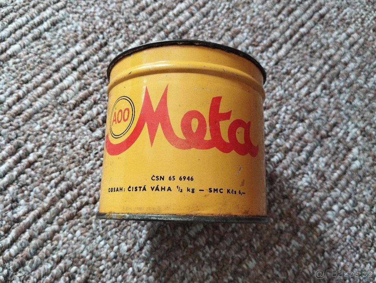 Prodám retro plechovku Meta, Koramo Kolín. Kontakt níže přes formulář.
