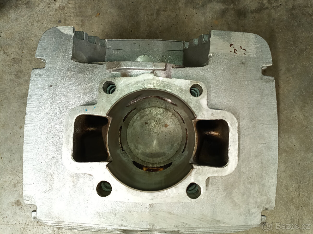 Prodám válec EM250, úprava kanálů 24PS. PRŮMĚR 76,3mm Vhodný na převložkování, radikální úpravu kanálů apod. abyste si zbytečně neničili válec s použitelnou vložkou. Závit výfuku a žebra OK.