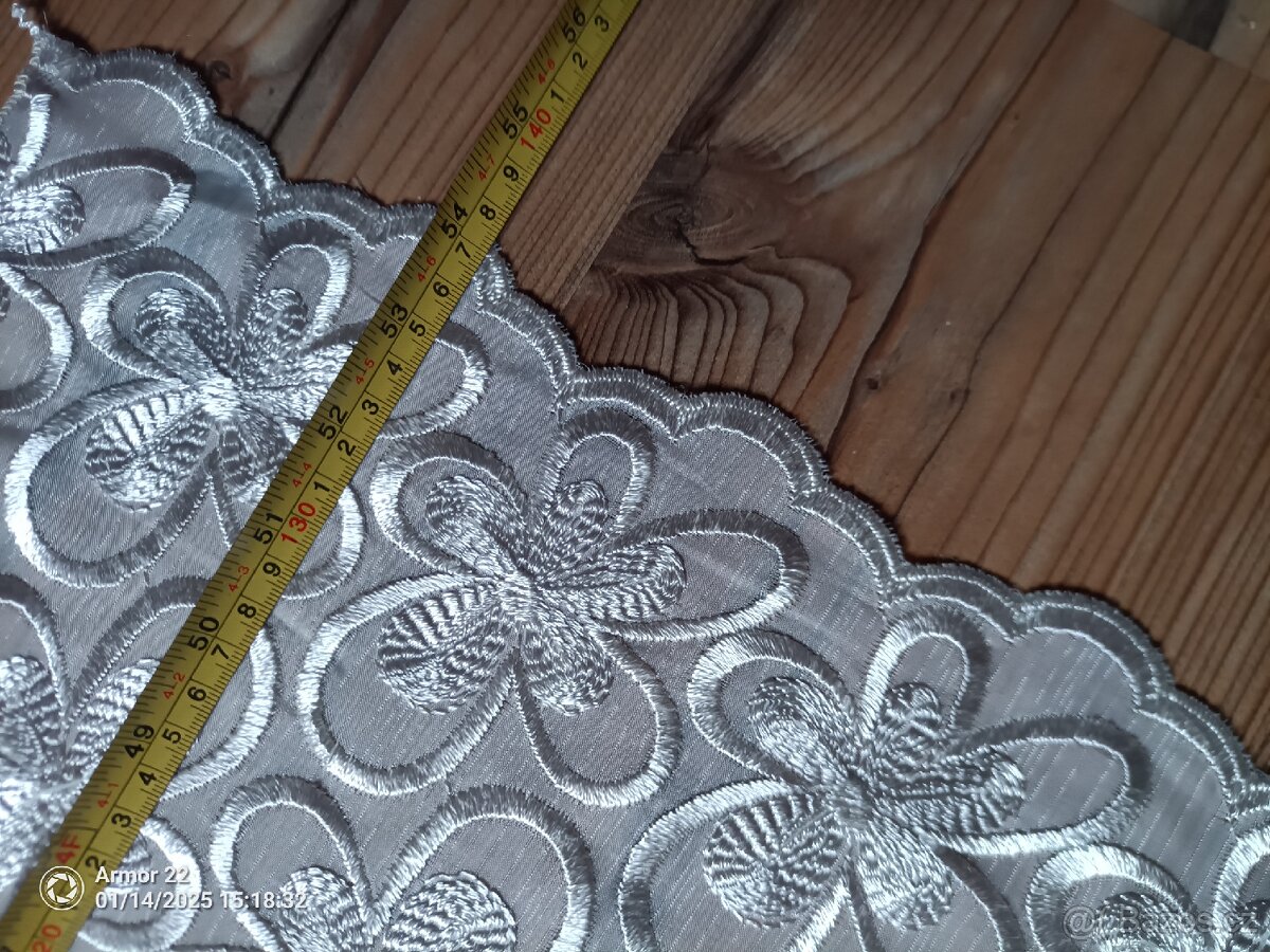 Prodám 3 kusy záclony: výška 1,4 m x 3,4 m. Nahoře je tunel 6 cm pro garnyž. Cena za kus 300 Kč.
