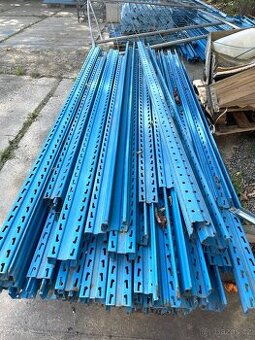 Cena: V textu. Prodám použité regálové stojiny Stow (možné využití i jako kovové profily), délka cca cca 2500 mm, profil 100x70 mm, modrá barva, stav viz foto. Cena 180 Kč/ks, odběr možný v Humpolci.