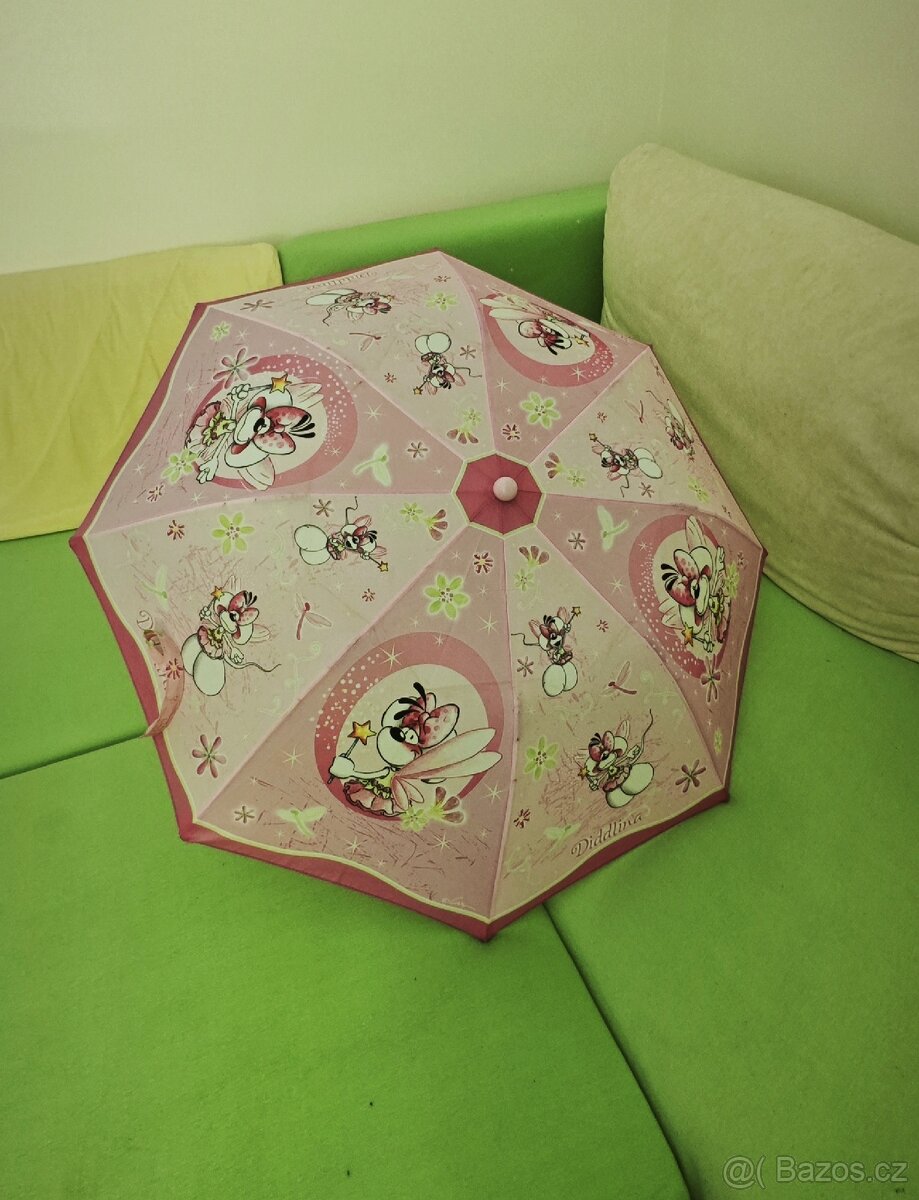 Dívčí deštník, průměr 80cm, celková délka 55cm, složený 30cm. Ve velmi dobrém stavu. Osobní odběr v Praze 10 nebo ČP/Balíkovna/Zásilkovna/PPL + poštovné.