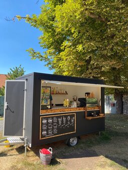 Nabízíme k prodeji naši plně vybavenou kavárnu- přívěs. Tak jak vidíte na fotkách. Jedná se o nebržděný přívěs do 750kg, ř.sk. B. OPRAVDU JEN NASEDNOUT A MŮŽETE PRODÁVAT! Italský kávovar v hodnotě 70.000,- po servisu 2025, mlýnek na kávu, chladící vitrínu na nápoje nebo zákusky. 2x lednice a 1x mrazící box. Vestavěná kuchyňská linka, 2x pracovní deska, umyvadlo a spousty úložného prostoru. V ceně také ručně dělaná nabídková tabule + dřevěná police na dochucování pro zákazníky. Nadrž na vodu cca80L, odpadní nádrž cca80L, el. Rozvaděč, přípojka na 230V/16A. Dále včetně všech zabezpečovacích prvků - zámek na kouli, botičku a vevnitř kamera se vzdáleným přístupem. Vozík přihlášen a již má TP. Pojízdnou kavárnu je samozřejmě možno vidět. Pro více informací nebo fotek volejte.