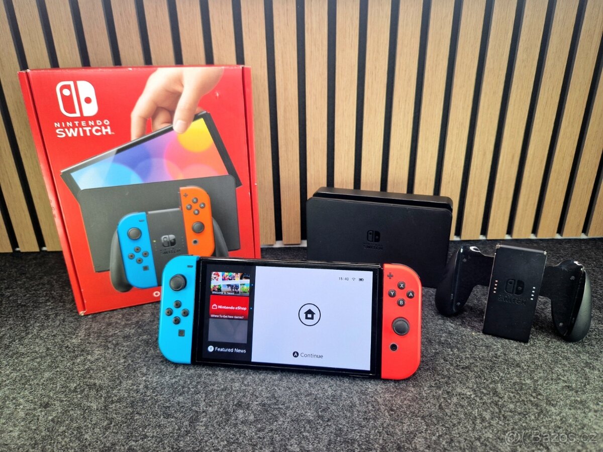 Herní konzole Nintendo Switch OLED je v krásném stavu. Oproti starším verzím bez OLED obrazovky disponuje kvalitnější OLED obrazovkou (živější barvy), lepším zadním stojánkem a silnější baterií. Nintendo je prodáváno s kompletním příslušenstvím ( samotnou konzoli, levý a pravý Joy-Con ovladač, Joy-Con grip (umožní spojit oba Joy-Cony do podoby jednoho ovladače), dvojici Joy-Con poutek na ruku, Nintendo Switch dok (dokovací stanice sloužící k propojení konzole a televize), HDMI kabel a AC adaptér. Nintendo Switch je odhlášený a uvedený do továrního nastavení. Na konzoli bude vystavena faktura se zárukou 12 měsíců.
