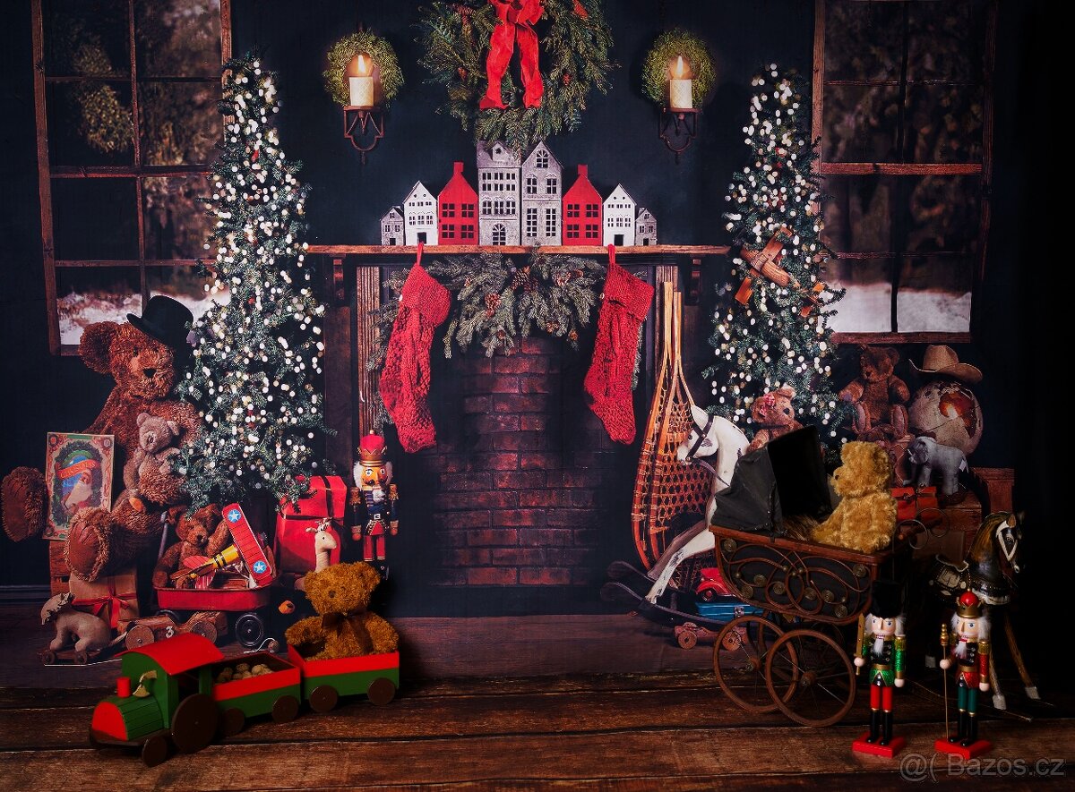 Nabízím Vánoční fotopozadí.... použila jsem na letošní sezonu a mělo veliký úspěch.... ale nikdy jsem stejnou scénu neopakovala 2x, takže posílám dál.... (bez podlahy, bez vláčku, kočárku a postaviček) Materiál je čína. Mělo po dojití bílé sklady (oloupla se barva), ale to jsem zamalovala čenou a hnědou fixou. Pokud se dobře nasvítí, není to vidět. Velikost je 245x180. V sedě na lavici nebo na zemi se mi vešla i celá rodina o 6ti lidech. Ve stoje i lidi menšího vzrůstu (viz foto) Pošlu zásilkovnou...